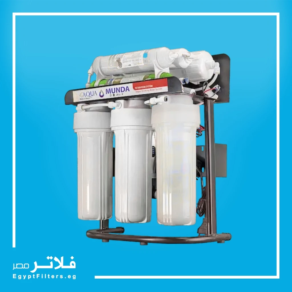 فلتر اكوا موندا ستاند Aqua Monda Stand التركي 7 مراحل RO من اكوا ترك يعتمد على تقنية التناضح العكسي، لتنقية المياه بشكل كامل إليك شرح كل مرحلة: