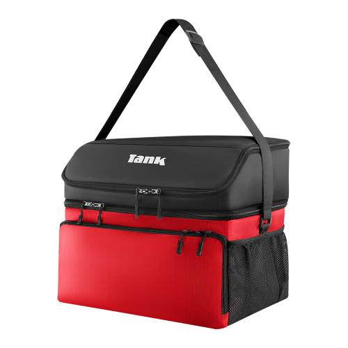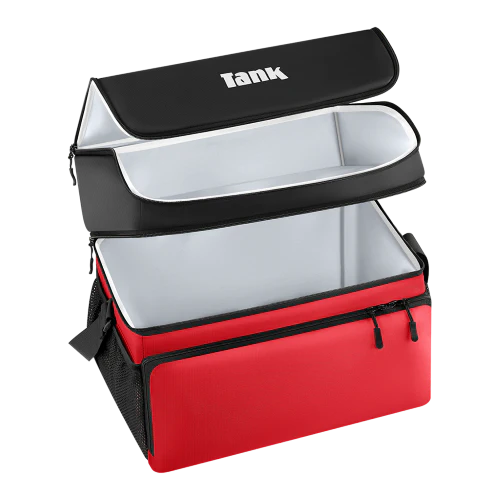 - عزل حراري فائق من ثلاث طبقات عازلة وهما طبقة خارجية من قماش أكسفورد وألياف البوليستر وطبقة داخلية من مادة إيفا وطبقة وسطى من رغوة اللؤلؤة بسمك 6 مم مما يضمن الحفاظ على درجة حرارة المحتويات لفترات طويلة.